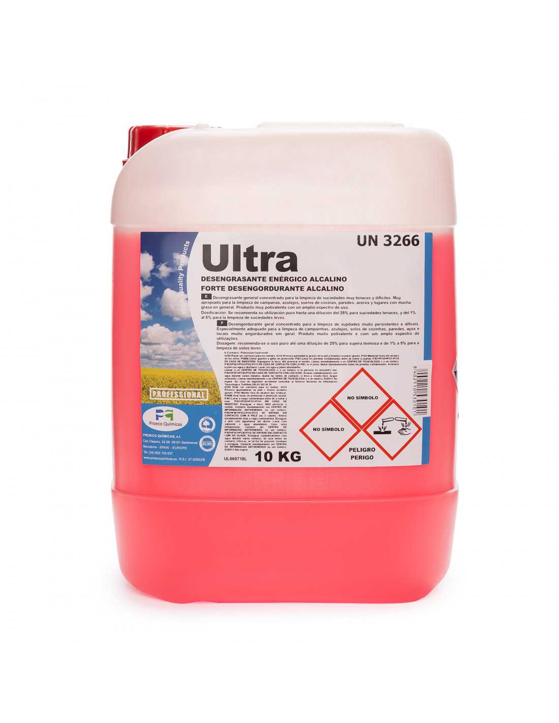 Ultra es un desengrasante muy potente y eficaz que elimina grasas y suciedad en múltiples usos, proporcionando una limpieza rápida y ahorrando costes de mantenimiento.